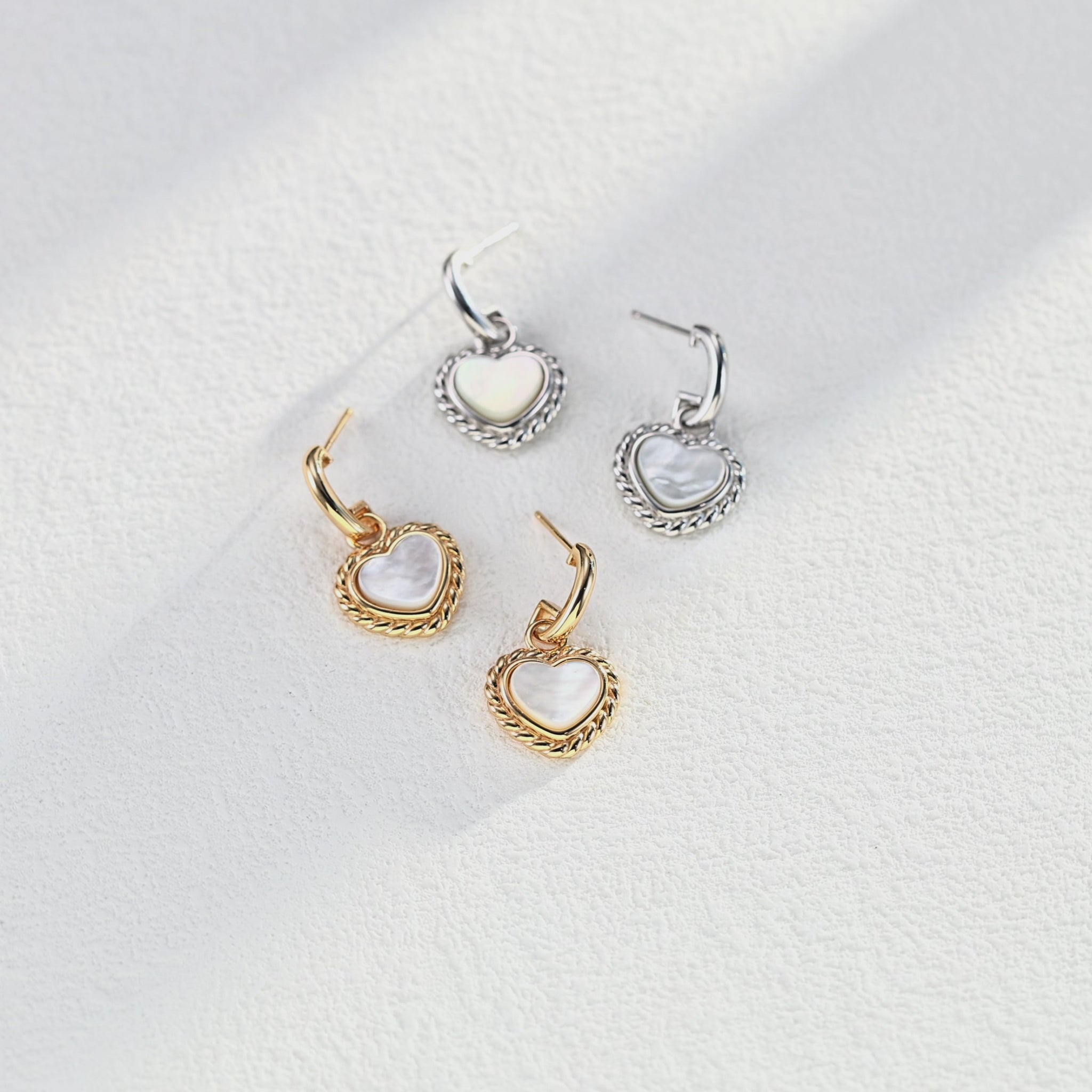 Fall in love with timeless elegance. These vintage-inspired heart earrings are crafted from genuine S925 sterling silver and natural white mother-of-pearl. The soft luster of the shell symbolizes pure devotion, while the heart shape captures the beauty of love in every detail. Available in retro gold and platinum finishes, these earrings bring a touch of romance and sophistication to your style.