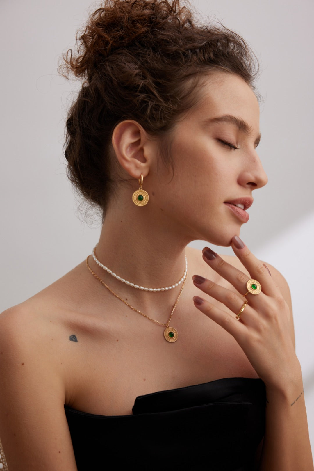 - Material: 925 sterling silver plated with 18K vintage gold, chalcedony
